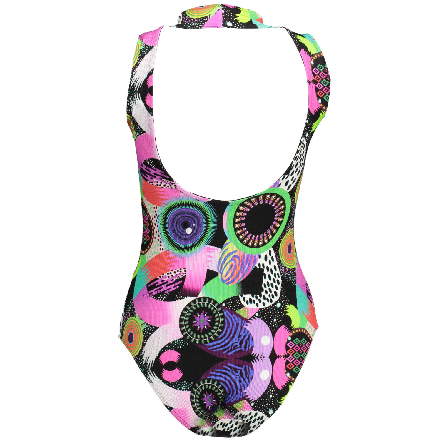 body a canotta, collo alto, schiena nuda, stampa, logo