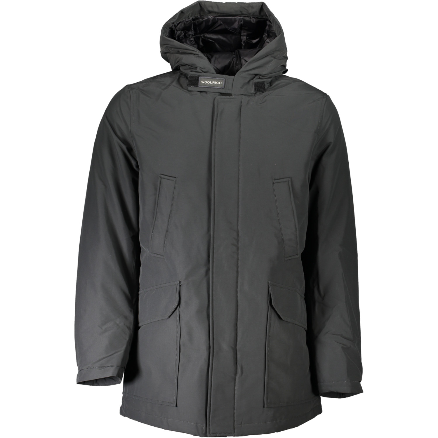 PARKA MANICHE LUNGHE CON CAPPUCCIO, 4 TASCHE, ZIP E BOTTONI, LOGO