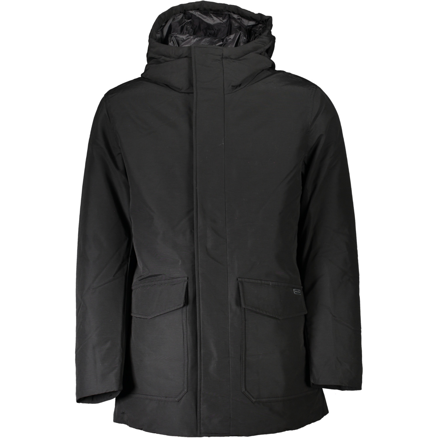 GIUBBOTTO LUNGO MANICHE LUNGHE CON CAPPUCCIO, 2 TASCHE, ZIP E BOTTONI, LOGO
