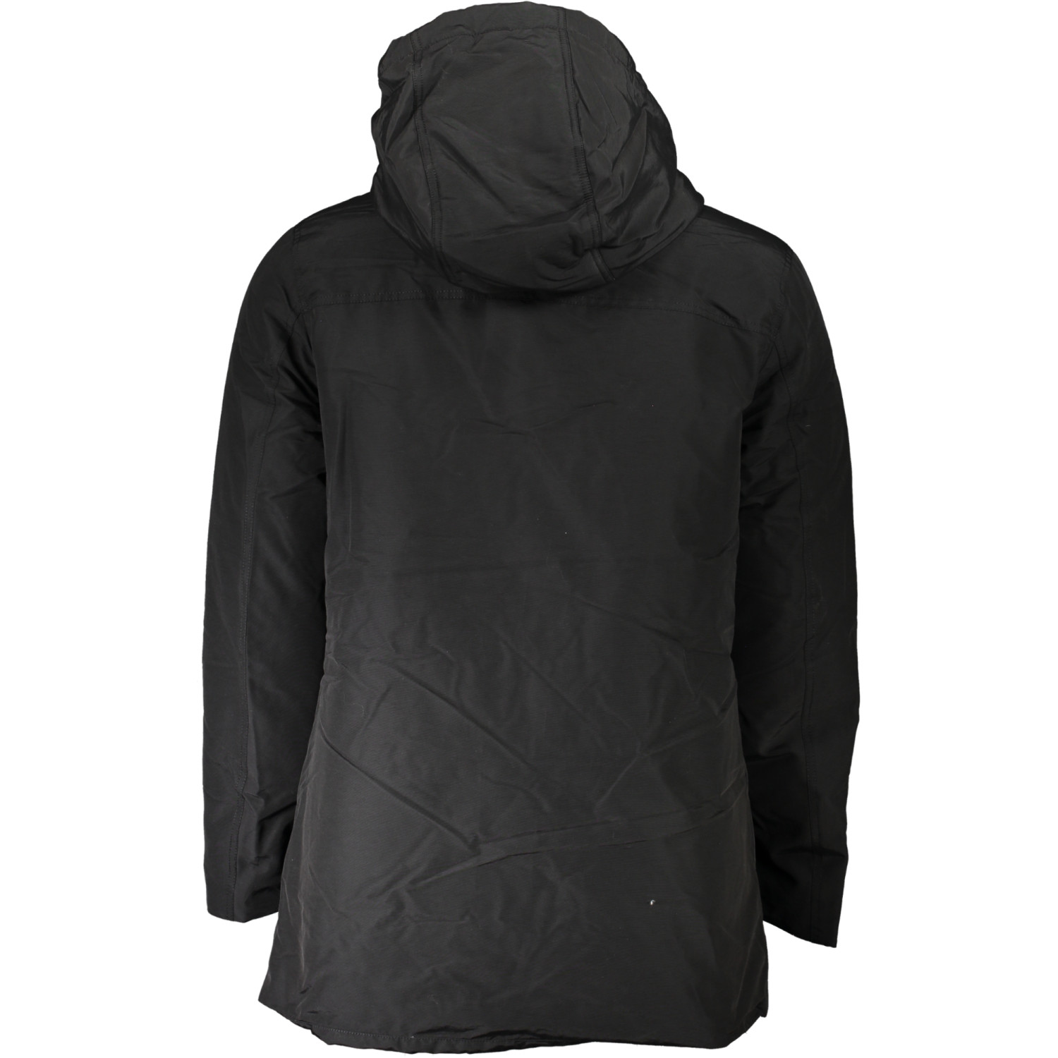 GIUBBOTTO LUNGO MANICHE LUNGHE CON CAPPUCCIO, 2 TASCHE, ZIP E BOTTONI, LOGO