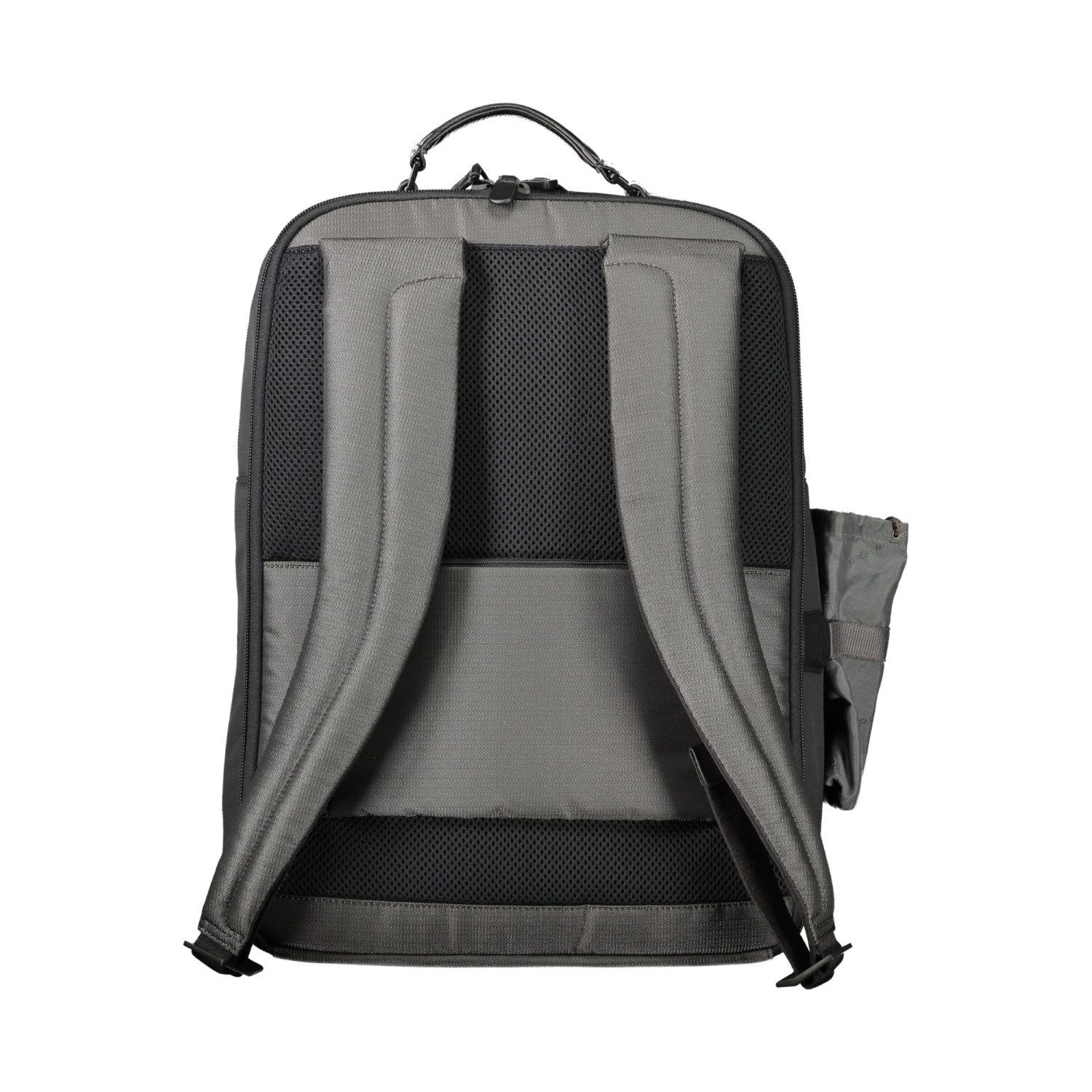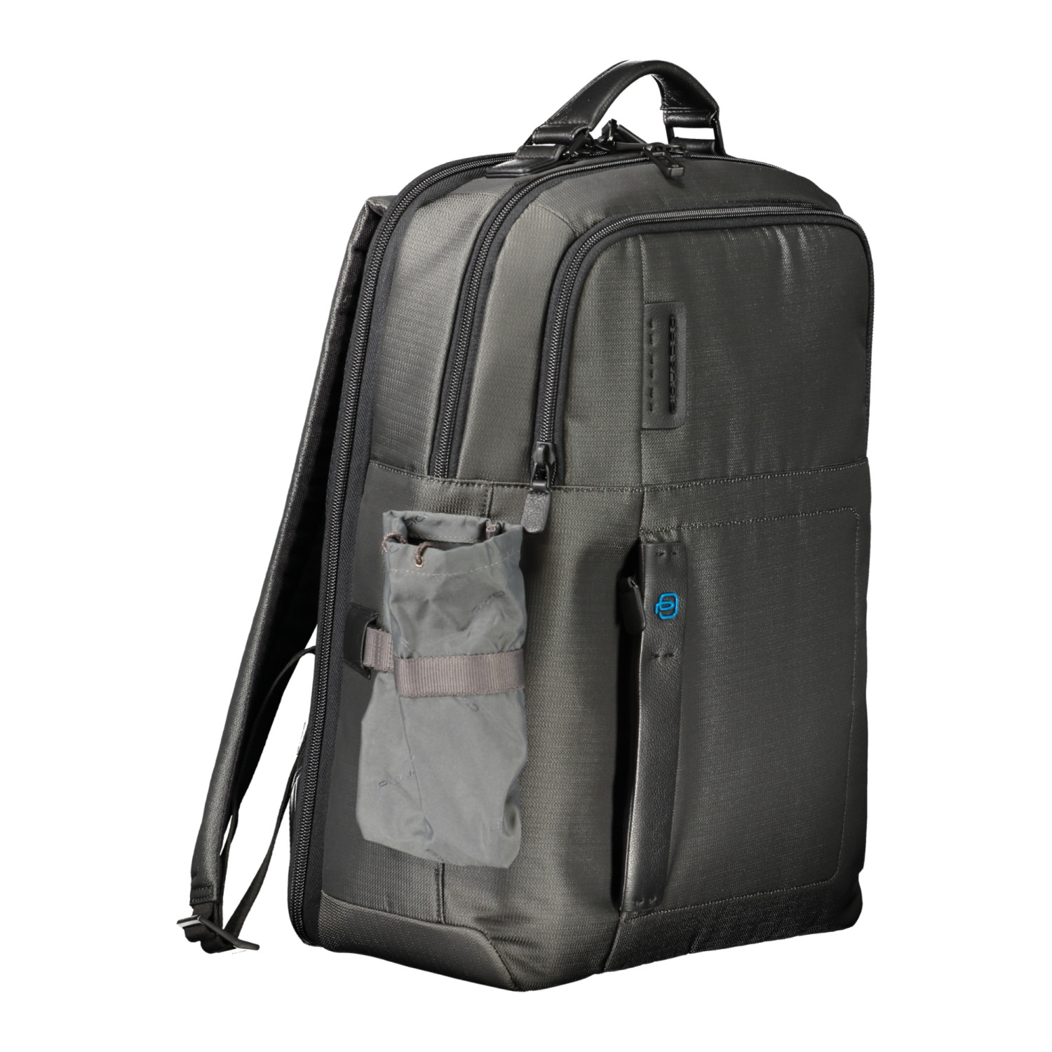 ZAINO 1 MANICO, SPALLINE REGOLABILI, 1 TASCA ESTERNA SUL RETRO, 2 TASCHE ESTERNE, 1 TASCA LATERALE ESTRAIBILE PORTA BOTTIGLIA, 2 SCOMPARTI SEPARATI, 1 TASCA PORTA LAP-TOP, SPAZI PORTAPENNE, 1 TASCA INTERNA, DETTAGLI A CONTRASTO, CHIUSURA CON ZIP, LOGO