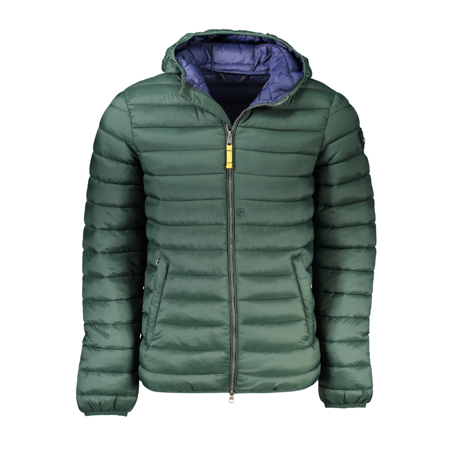 GIUBBOTTO MANICHE LUNGHE CON CAPPUCCIO, 2 TASCHE ESTERNE, 3 TASCHE INTERNE, ZIP, 1 BOTTONE, APPLICAZIONE, LOGO