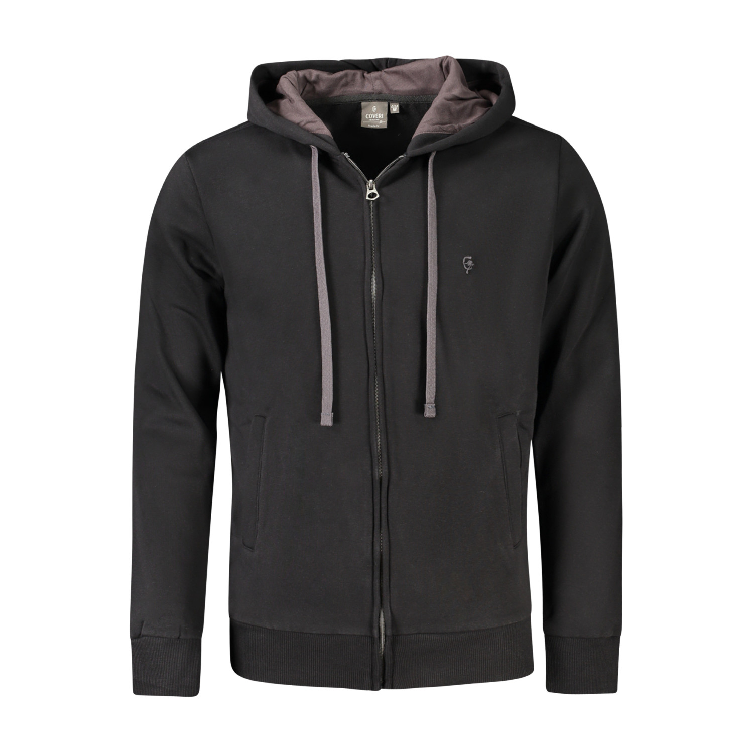FELPA MANICHE LUNGHE CON CAPPUCCIO, FELPATA, 2 TASCHE, ZIP, RICAMO, LOGO