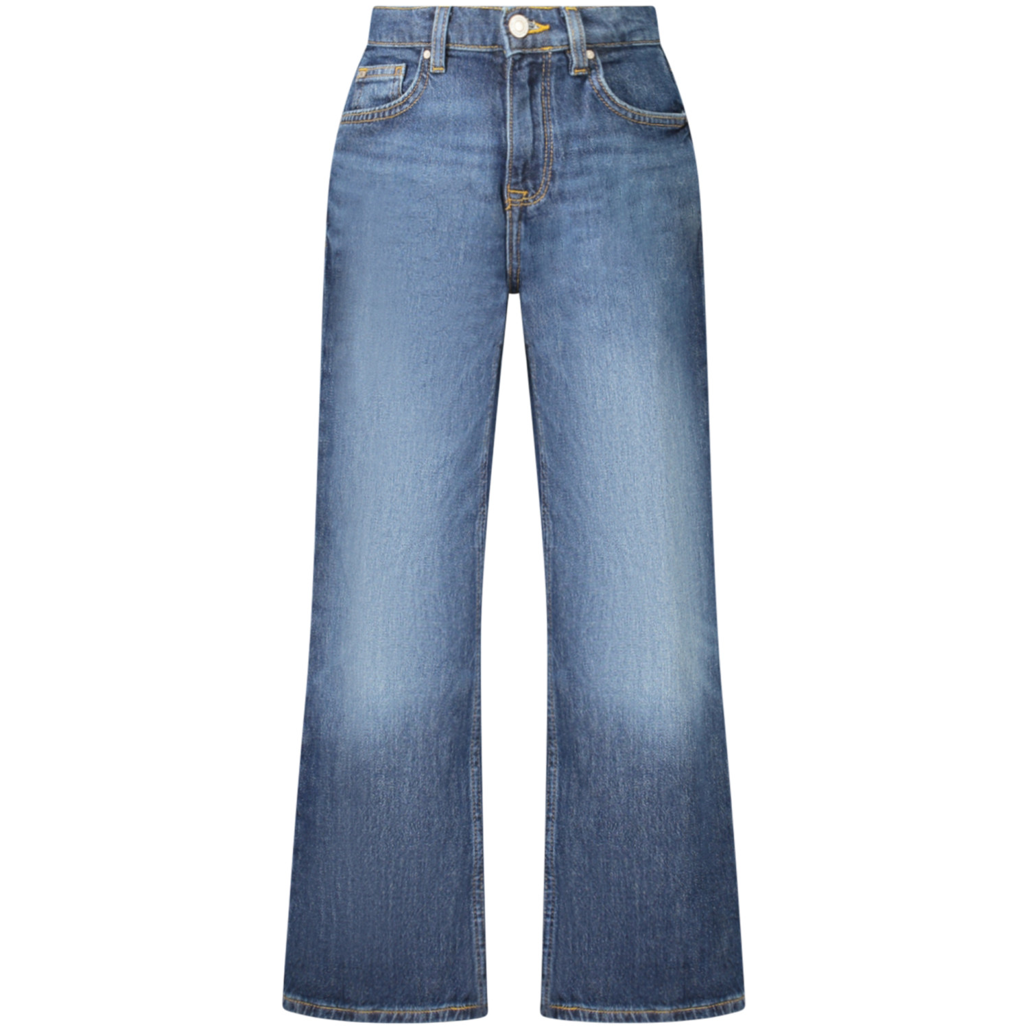 JEANS A PALAZZO, 5 TASCHE, ELASTICO INTERNO REGOLABILE, BOTTONE E ZIP, LOGO, ORGANIC COTTON